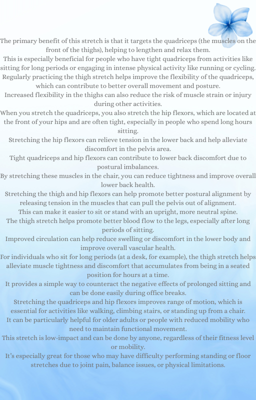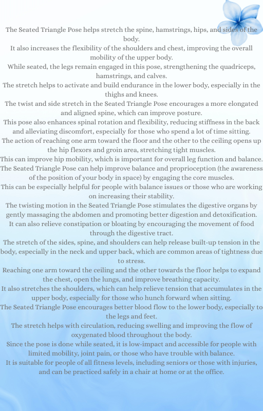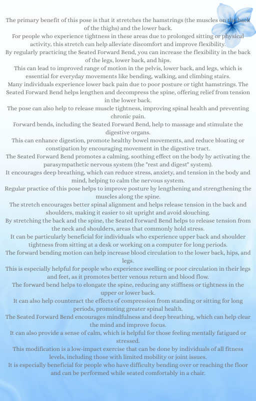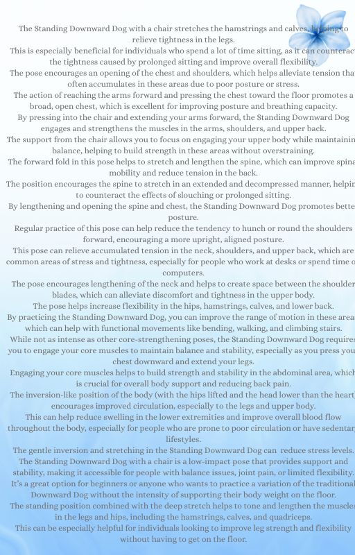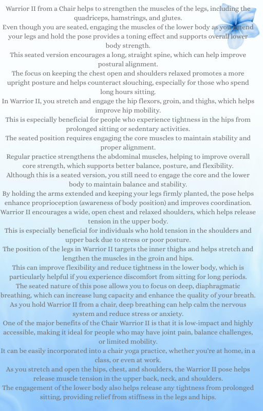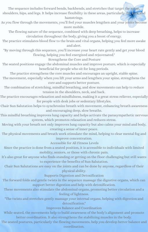 Experience the benefits of our Chair Yoga routine, available for instant download as a PDF guide. This gentle form of yoga is perfect for those with limited mobility or seeking a low-impact workout. Improve your flexibility, balance, and overall well-being with this easy-to-follow seated yoga practice. Ideal for seniors, office workers, or anyone looking for a relaxing and invigorating workout from the comfort of their chair.